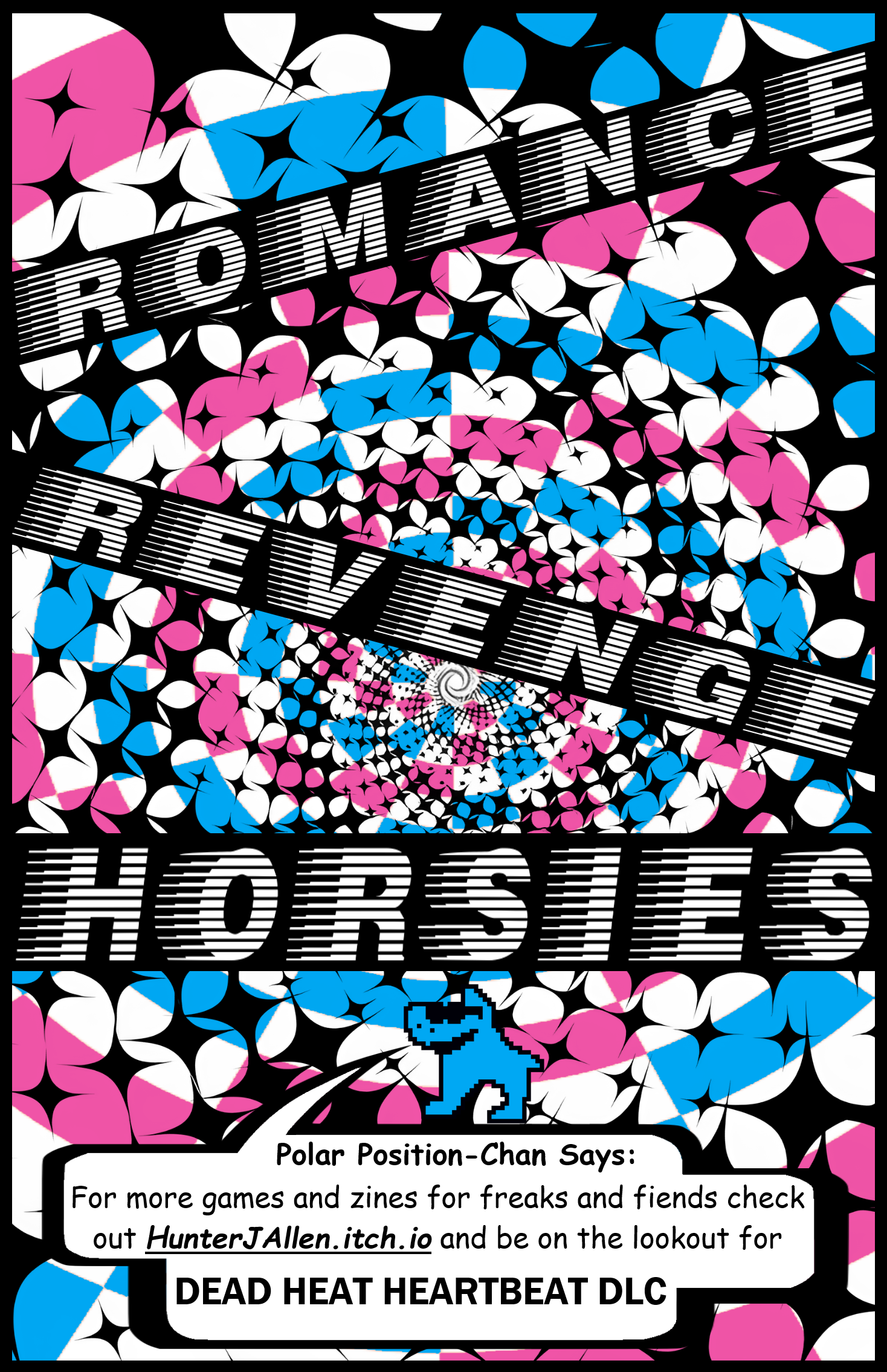 Dead Heat HeartBeat is a TTRPG based on one of my favorite pieces of internet psychosis: Horse Race Test. In this game you and your friends will roll dice, race to the finish line, and spin yarns tied around the hearts of your champion race horses. This is a storytelling game of emergent fiction that I think very well captures the chaotic and meaningful ways in which collaborative fiction can spring from chance.